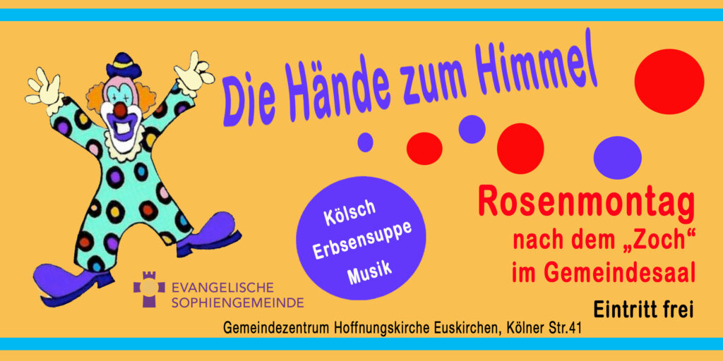 Auch dieses Jahr findet wieder in der Evangelischen Sophiengemeinde, im Gemeindezentrum der Hoffnungskirche, an Rosenmontag wieder eine After Zoch Party statt.