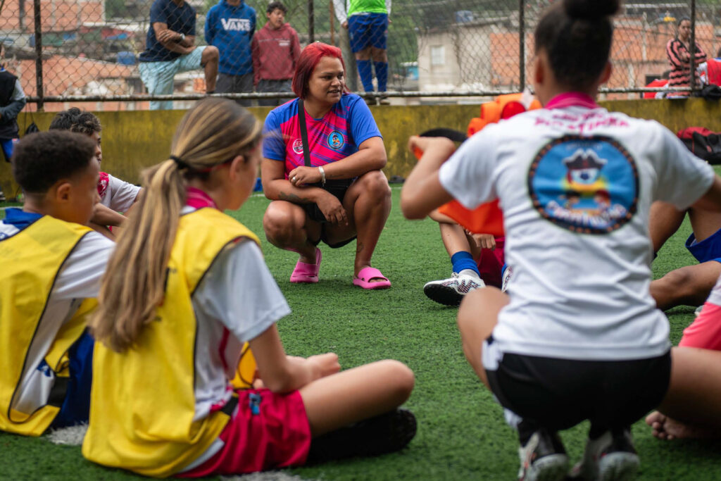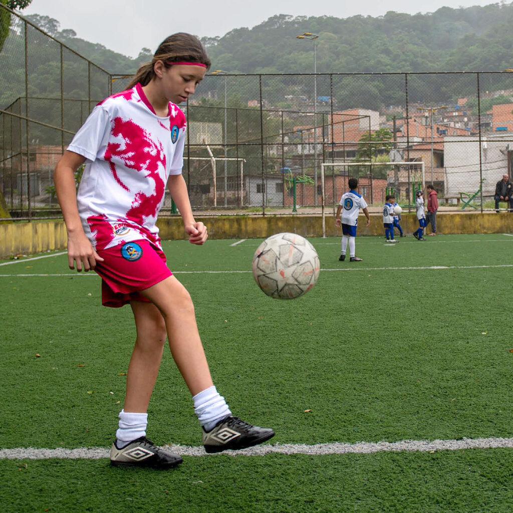 Sonntagmorgen auf dem Fußballplatz von Santo Andre, einem Vorort von Sao Paulo: Ein Dutzend Jungen und Mädchen rennen über den 10 mal 20 Meter großen Kunstrasen, dribbeln, schießen, gestikulieren, jubeln. Mittendrin: Maria Eduarda de Almeida Barbosa, genannt Duda. Die Zwölfjährige umkurvt mühelos ein paar Spielerinnen und Spieler der gegnerischen Mannschaft und passt den Ball dann weiter.