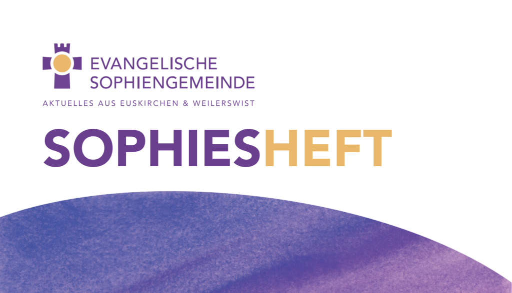 4 mal im Jahr erscheint Sophies Heft. In Euskirchen lange Zeit als Gemeindejournal, in Weilerswist als “Unsere Gemeinde” bzw. als Gemeindebrief bekannt. Zur Zeit 12 zumeist ehrenamtliche Redakteurinnen und Redakteure stellen es auf die Beine. Über 100 Menschen tragen unsere Kirchenzeitung aus zu den über 7000 Mitgliedern unserer Gemeinde. Sophies Heft ist also eine wirkliche Gemeinschaftsleistung.